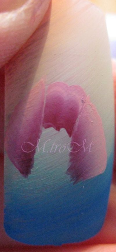 Далее,выкладываем на палитру цвета и делаем растяжку цвета до получения плавного перехода между цветами (набираем на кисть пастэль и основной и на кончик с основным цветом немного набираем темной,для глубины цвета)